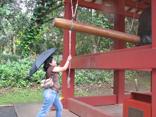 The next morning, Thursday, we took them to see the Duke statue in front of Waikiki beach so my father-in-law could call his friends back in Texas and have them watch him live on the Internet. Later that day we took them to the Honolulu Botanical Gardens because we knew they loved plants. Sure enough they took pictures of every plant and flower they saw. I enjoyed seeing their faces light up with delight as they saw each flower. After the botanical gardens we went to see the beautiful Japanese temple called Byodin Temple. We were a little confused at first because we didn’t realize it was located within a cemetery called the Valley of the Temples. That didn’t take away from the beauty of it, and you don’t notice the cemetery once you enter the temple grounds. It was peaceful there. After the temple visit we drove the remainder of the windward coast and up toward the North Shore where we ended our evening with a nice dinner in a funky surfer-styled restaurant.