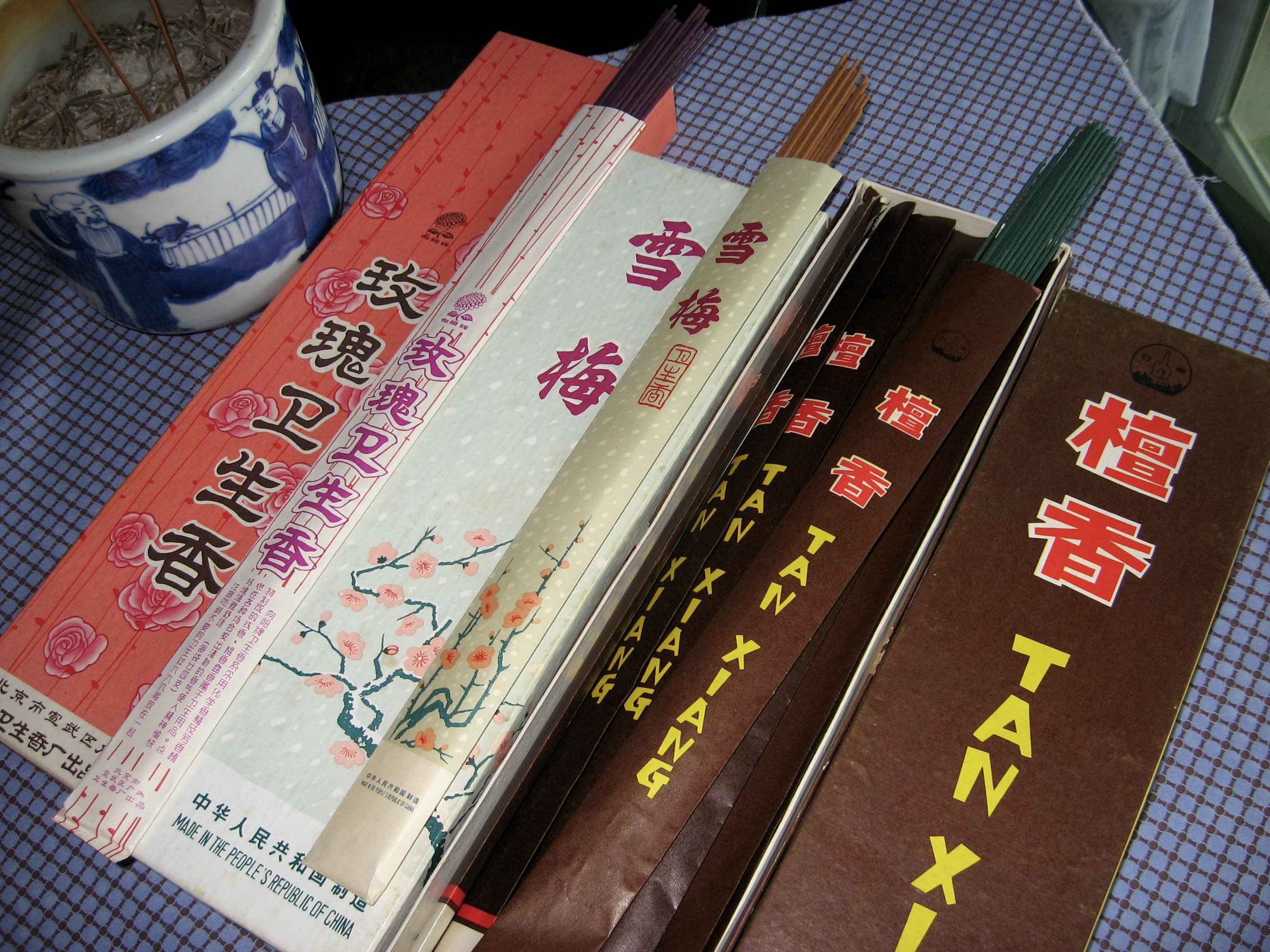 ここ二月余り、毎朝仏壇で炊いているお線香は40年前(1975年)沖縄で開催された海洋博(正式名称は沖縄国際海洋博覧会だと思います)で買ったものです。皆、中国製で30センチと長いので半分に折って使います。それまで使っていた日本香堂製の毎日香をネットで注文したのですが、日本から米国に到着するのに1、2ヶ月かかるとのこと。どうやら、私の注文はうやむやになってしまったようです。待っている間に、ひょっと、海洋博で線香を買ったことを思い出し、探してみると思った以上の沢山の線香が引き出しから出てきて大喜びしました。聞くところによると、中国は変革著しいとのこと、40年前の線香をみて驚くのではと想像しています。